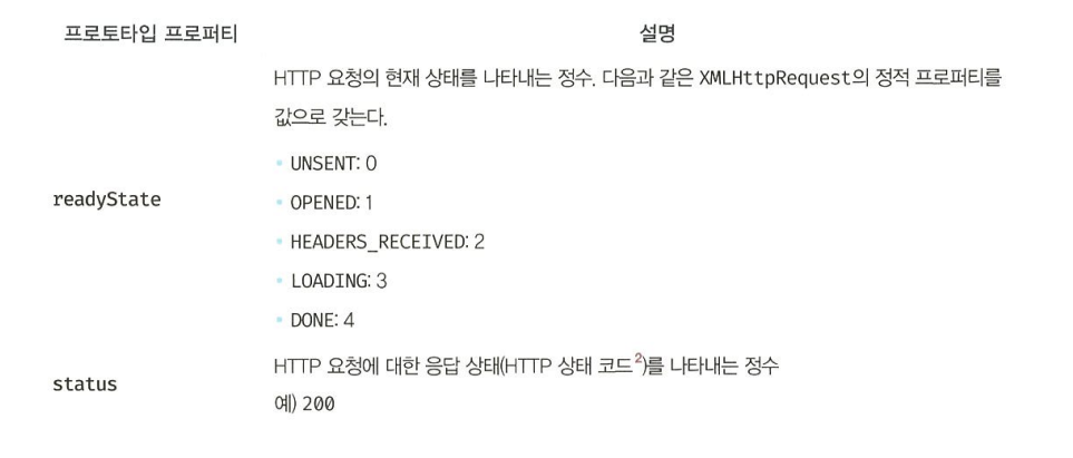 Ajax는 브라우저에서 제공하는 Web API인 XMLHttpRequest 객체를 기반으로 동작한다. XMLHttpRequest는 HTTP 비동기 통신을 위한 메서드와 프로퍼티를 제공한다.