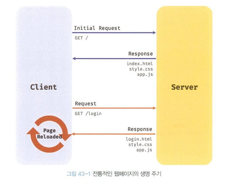 이전의 웹페이지는 완전한 HTML을 서버로부터 전송받아 웹페이지 전체를 처음부터 다시 렌더링하는 방식으로 동작했다.
